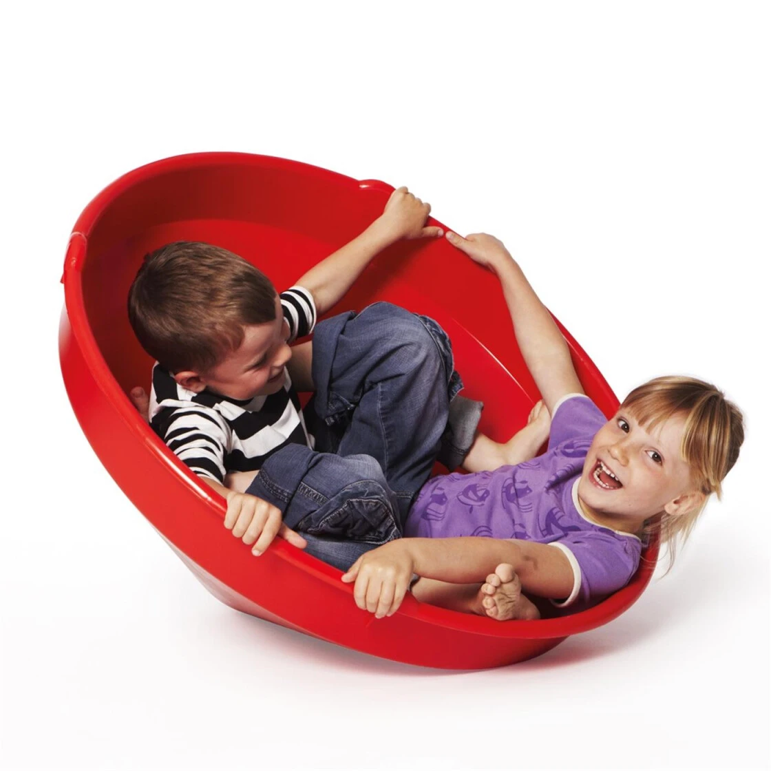 Im Original Gonge Riesenkreisel können 1 bis 2 Kinder hin- und herschaukeln, wippen, kullern, im Kreis drehen, eine Höhle bauen, sich verstecken…