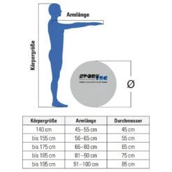 Größenempfehlung von sport-klausmann.de für Gymnic-Bälle: