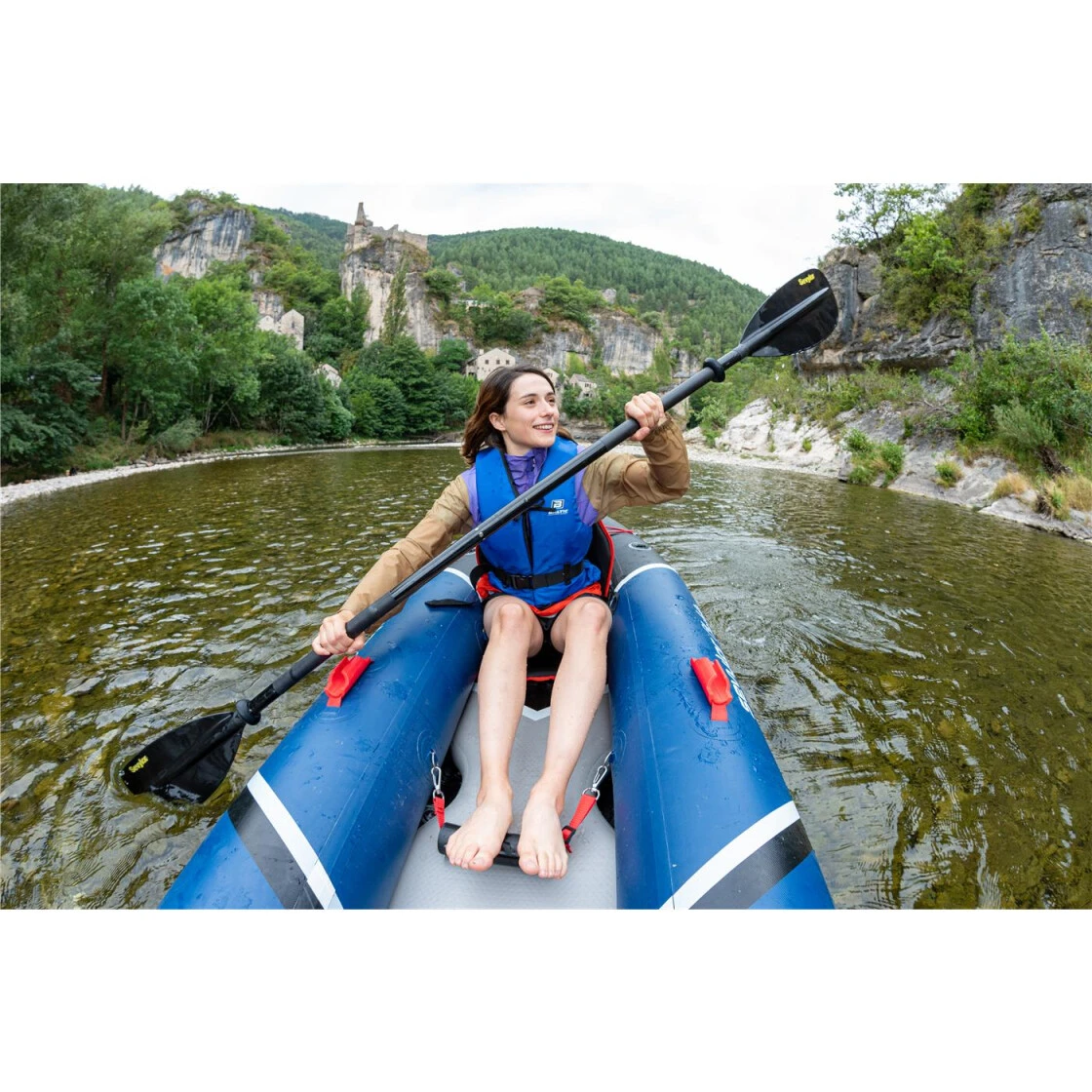 Dieses schnittige Boot mit Drop-Stitch Boden ist ein sehr gut manövrierbares Schlauchboot. Die thermogeformte Sitze sorgen für den nötigen Komfort. Das mit Polyester überzogene Kajak trocknet schneller. Gummiseile vorne zur Gepäcksicherung, mit Tragetasche, Easy Inflation Manometer und Reparaturset gehören zum Lieferumfang.