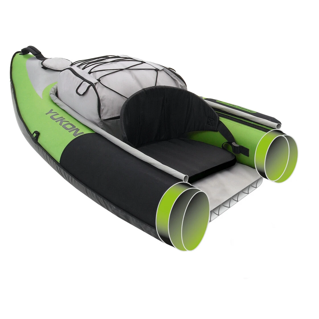 Tolles Boot für Outdoor und Freizeit. Zuverlässig, stabil und sehr geräumig. In keinster Weise vergleichbar mit herkömmlichen Schlauchbooten für den Badebetrieb! Eine herausnehmbare PVC-Seitenkammer, der PVC-Stegluftboden und eine Stabilisierungskammer am Spritzschutz sorgen für die stabile Lage des Bootes. Die weichen Neoprenpolster an den Seiten dienen zur Bequemlichkeit und zum guten Schutz des Paddlers. Zur Ausstattung gehören außerdem: eine Finne, zwei ergonomische Luftsitze (verstellbar), verstellbare Fußstützen, Lenzventile, Spurprofile, ein herausnehmbares Staufach, Spannbänder, Tragegriffe, Packrucksack, Manometer und Schraubventile.