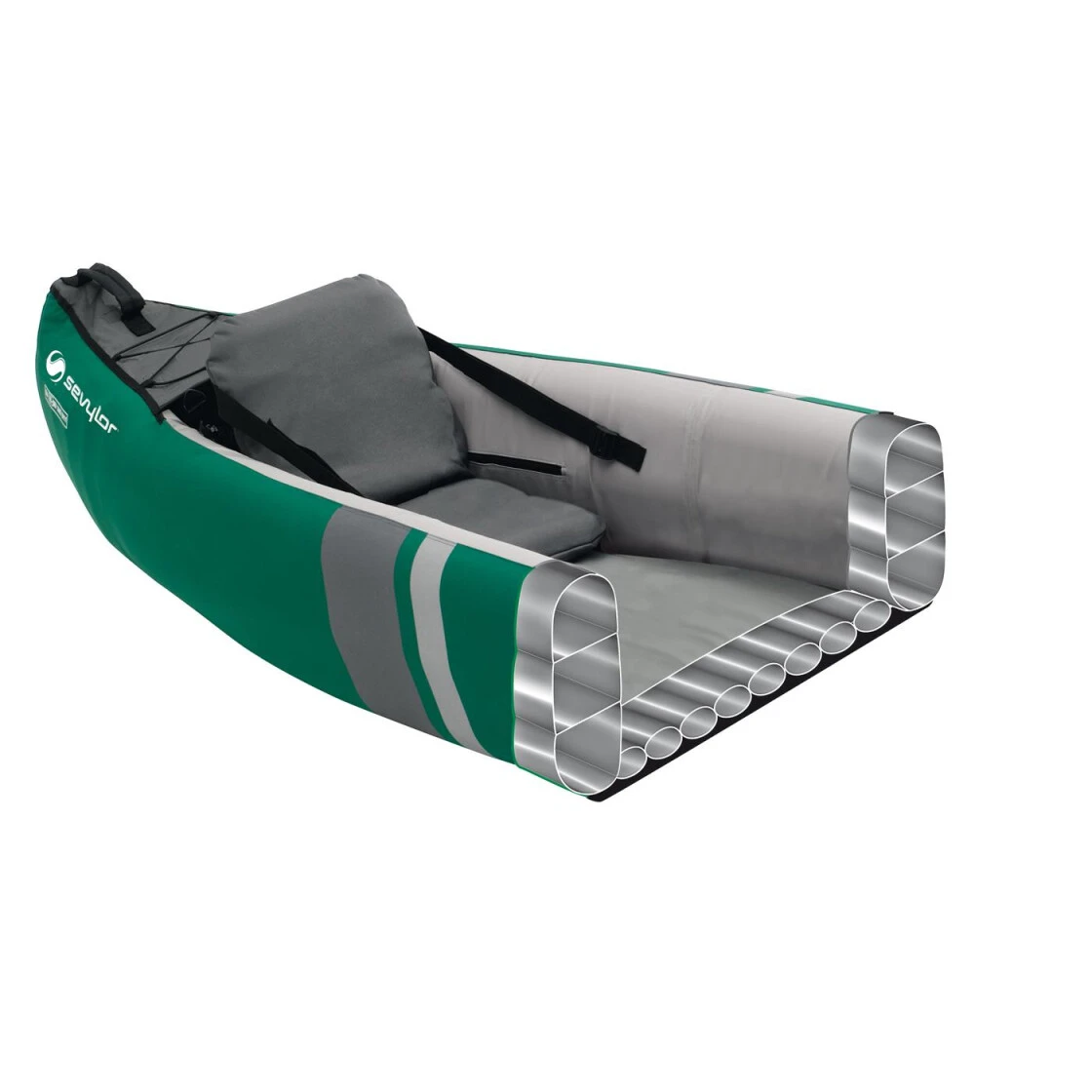 Ideal für Seen und ruhige Flüsse. Mit den hochgezogenen Seitenwänden auch gut für die Familie mit Kind geeignet. Zwei herausnehmbare PVC-Seitenkammern und der herausnehmbare PVC-Stegluftboden, die Außenhülle aus Polyester, ein Spurprofil, die Finne und das Lenzventil runden die gute Ausstattung des Bootes ab. Das Luftkanu verfügt über zwei ergonomische Sitze (verstellbar) mit Polyesterüberzug sowie das herausnehmbare Kindersitzkissen. Manometer, Tragegriffe und das neue Backpacksystem mit Schulterriemen machen das Handling einfach und schnell.