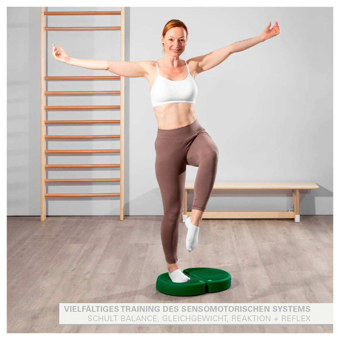 Egal ob im Stand oder in Bauch- bzw. Rückenlage, lässt die Labilität, dank der Luftfüllung jede bekannte Übung zu einem Bewegungserlebnis mit Spaßgarantie werden. Die eingelegte Verbindungsplatte gibt die nötige Stabilisierung, sodass eine gute Bodenhaftung garantiert ist. Die mit Luft gefüllten Kammern ermöglichen ganz kleine Bewegungsmomente. Dies bedeutet hohe Anforderung und somit schnelle Trainingseffekte.